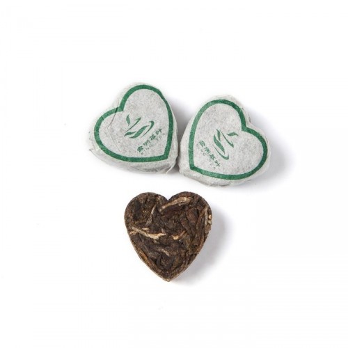 Данный пуэр относится к категории шен и спрессован в форме сердечка.