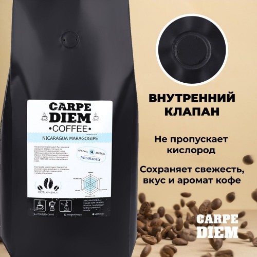 100% Арабика «Никарагуа Марагоджип» - это элитный сорт кофе с большущими маслянистыми зернами, которые превосходят все известные сорта обычной арабики размерами почти в четыре раза. Арабика «Никарагуа Марагоджип» значительно отличается по вкусу от традиционного, поэтому его зачастую смешивают с другими сортами, чтобы сделать больше похожим на привычный, или наоборот, оттенить его особенности. «Никарагуа Марагоджип» отличает насыщенный настой с глубоким и ярким вкусом, сменяющийся долгим и устойчивым послевкусием.