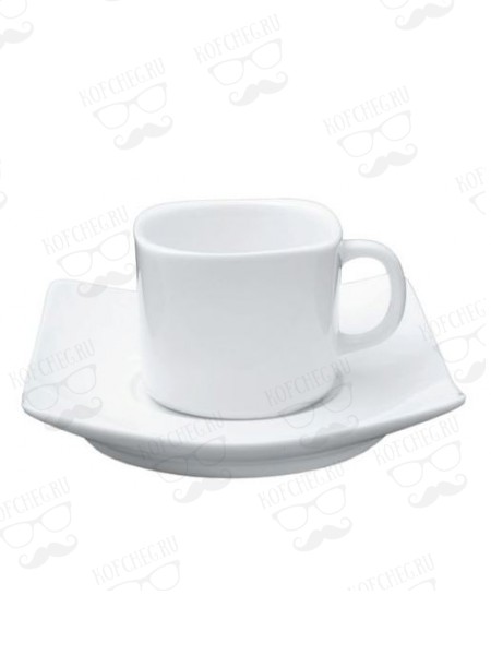 Кофейная пара квадратная 80мл фарфор,белая (упаковка - 6 шт)..