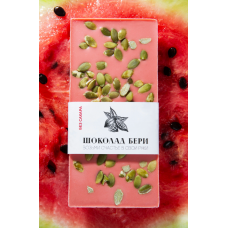 Состав: какао масло, сухое обезжиренное молоко, олигофруктоза, сухое цельное молоко, смесь подсластителей (стевия, эритрит, сукралоза), тыквенные семечки, ароматизатор (ваниль, арбуз), соевый лецитин, пищевой краситель.